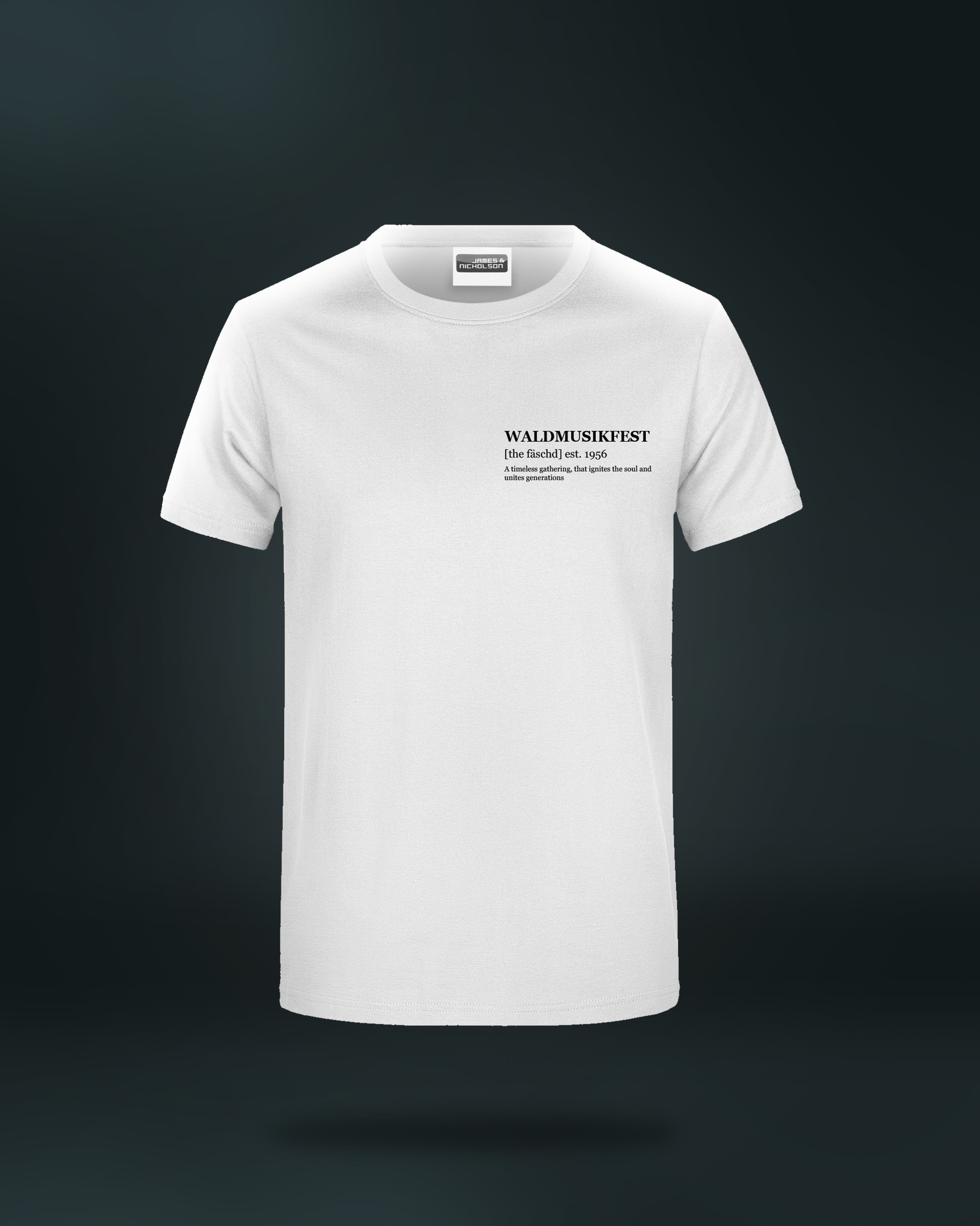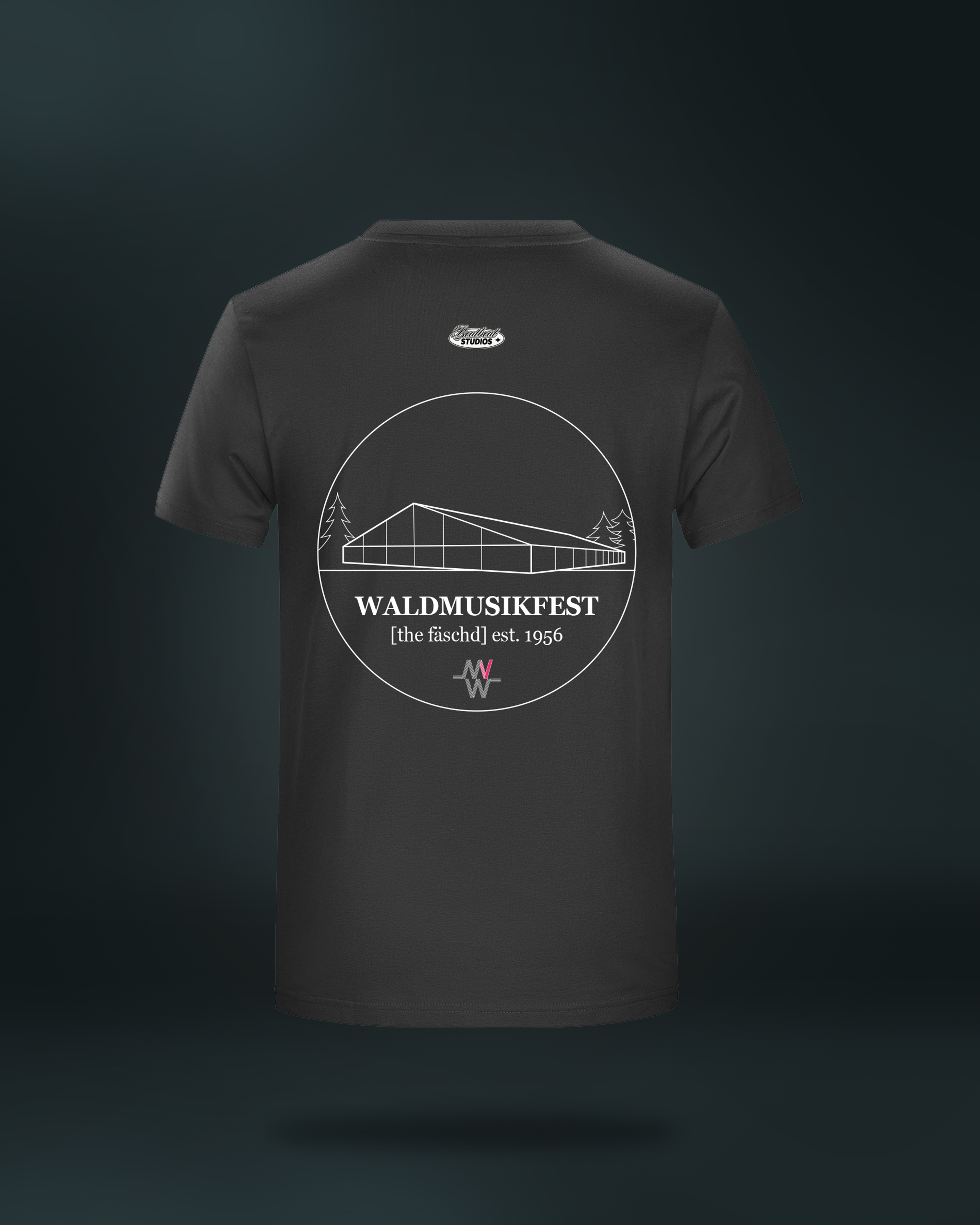 Das Waldmusikfest-Zelt im Linien-Stil, eingerahmt im Kreis – auf dem Rücken macht das einfach was her. Vorne die dezente Definition auf Brusthöhe, hinten das Statement. Alltagstauglich und trotzdem erkennbar für alle, die's wissen. Erhältlich in Schwarz und Weiß.